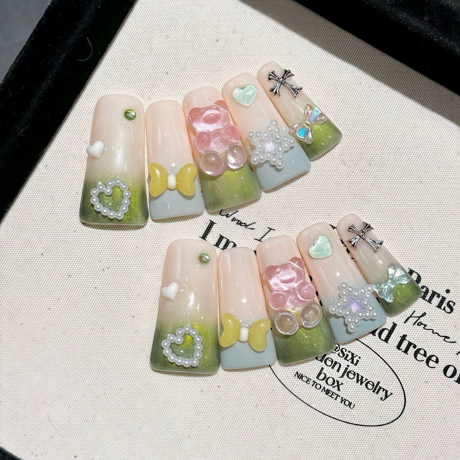 Every set is meticulously made by skilledartists-no factories, no mass productionJust real humans pouring creativity intoevery detail. Psst... each set is *one-of-akind*, so your nails stay as unique as youare!