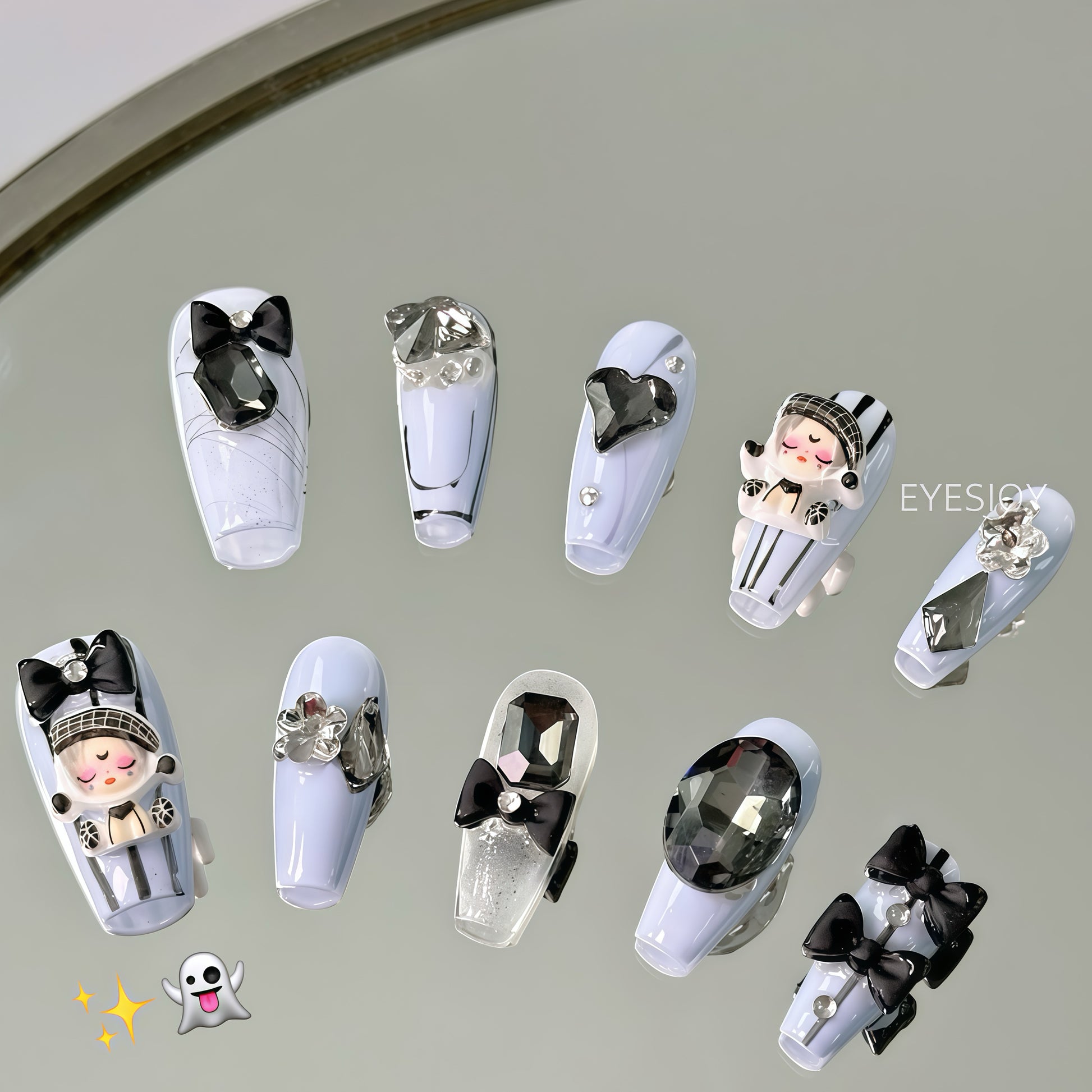 Every set is meticulously made by skilledartists-no factories, no mass productionJust real humans pouring creativity intoevery detail. Psst... each set is *one-of-akind*, so your nails stay as unique as youare!