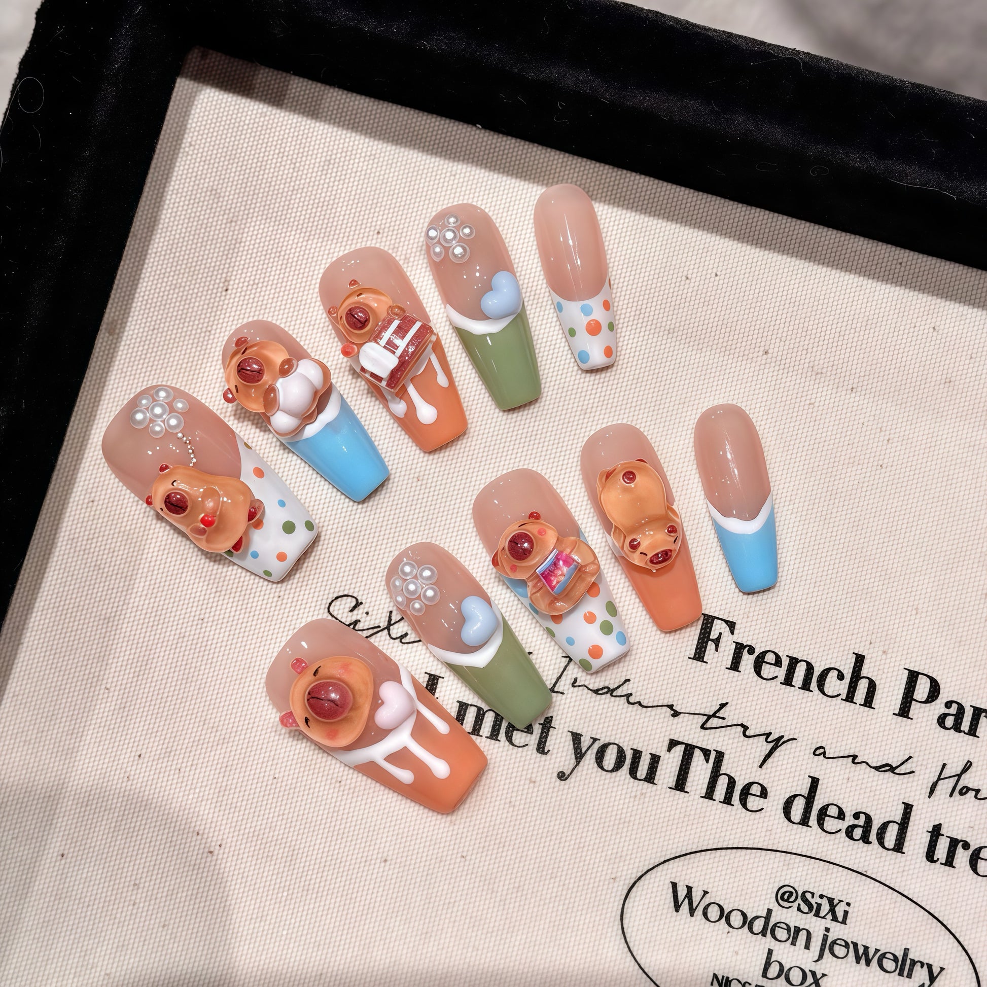 Every set is meticulously made by skilledartists-no factories, no mass productionJust real humans pouring creativity intoevery detail. Psst... each set is *one-of-akind*, so your nails stay as unique as youare!
