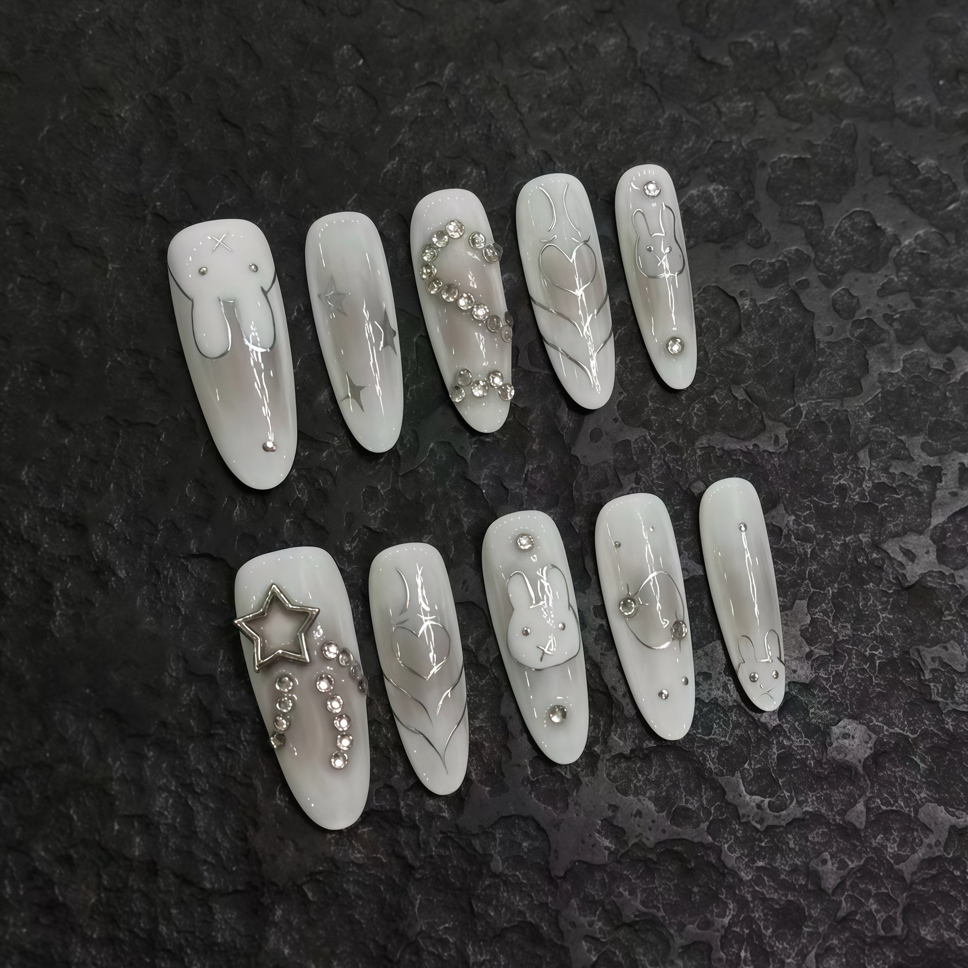 Every set is meticulously made by skilledartists-no factories, no mass productionJust real humans pouring creativity intoevery detail. Psst... each set is *one-of-akind*, so your nails stay as unique as youare!